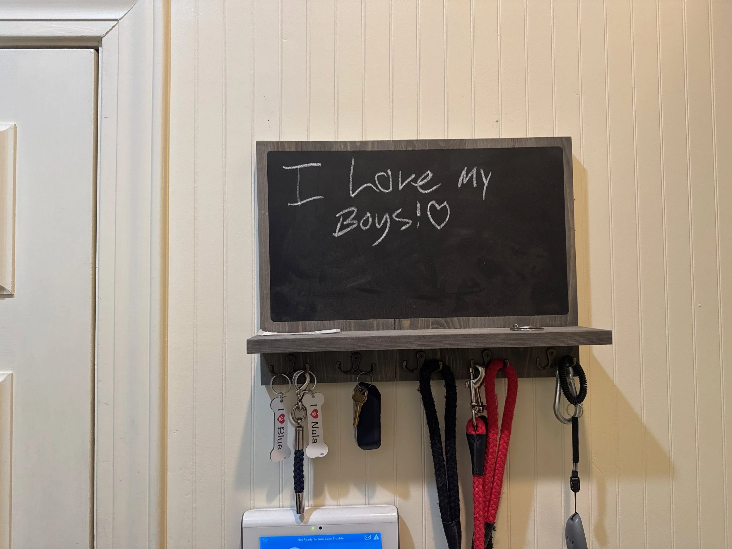 But even in these rushed, quiet mornings, there are things they notice things they probably won’t admit they notice. Like the little chalkboard by the back door, I know they see it as they walk out. I know their eyes catch it, even if just for a second. That tiny reminder: “I love my boys.” It’s simple, a little cheesy, but it’s my quiet way of speaking when there isn’t time for words.